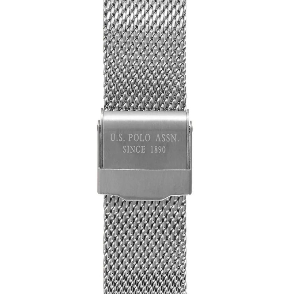 Montre Us Polo Acier Argente Ronde Quartz 43mm Fond Bleu Bracelet Acier Argente Milanais Usp7141bl