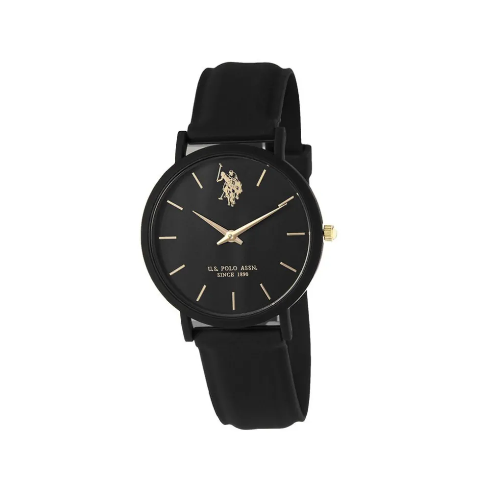 Montre Us Polo Plastique Noir Ronde Quartz 36mm Fond Noir Bracelet Silicone Noir Usp8163bk