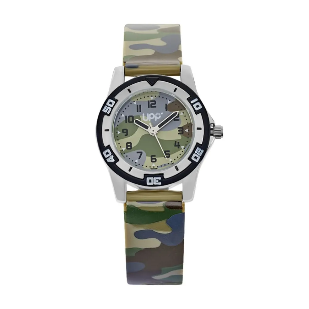 Montre Upp Alexis Alliage Argenté Ronde Quartz 28.75mm Lunette Noire Fond Camouflage Bracelet Plastique Camouflage Cl241