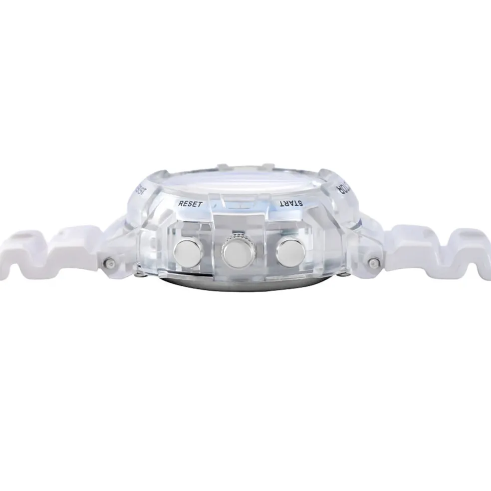 Montre Upp Cosmic Plastique Transparent Ronde Digitale 39mm Fond Bleu Bracelet Plastique Blanc P101173-b