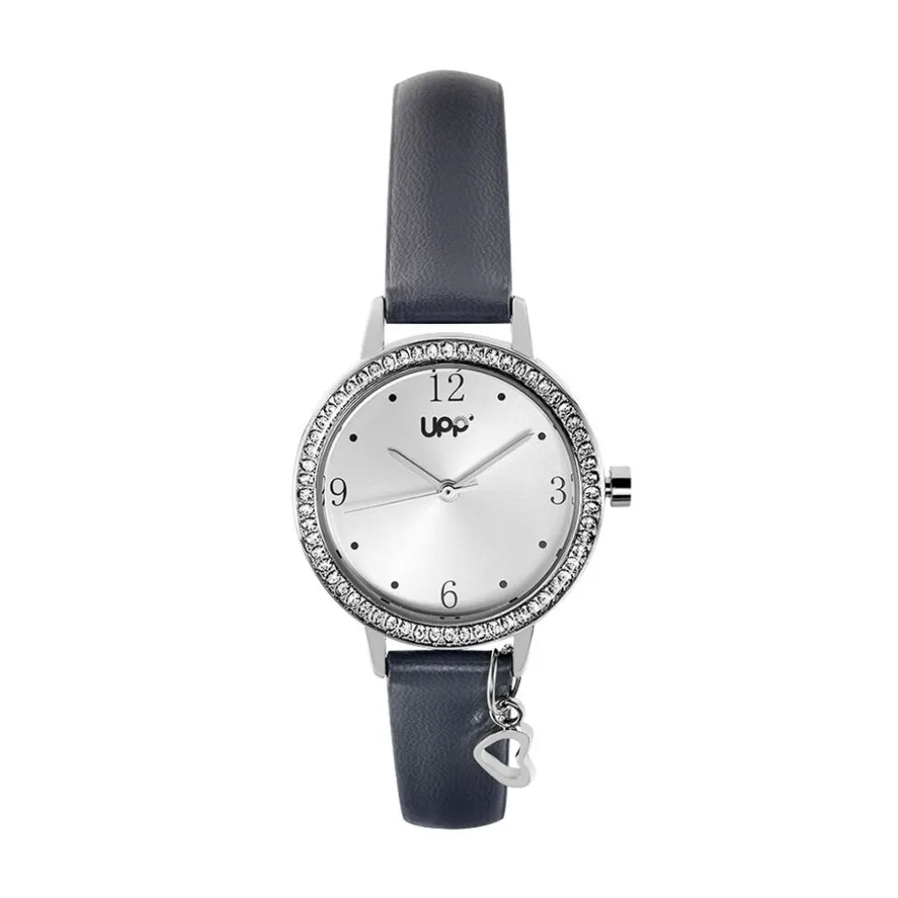 Montre Upp Julia Alliage Argenté Ronde Quartz 30mm Fond Blanc Bracelet Synthetique Gris Cl230