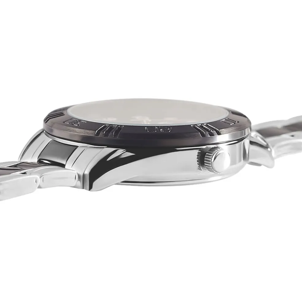 Montre Upp Matthieu Laiton Blanc Ronde Quartz 36.5mm Fond Noir Bracelet Métal Bicolore P100915-d