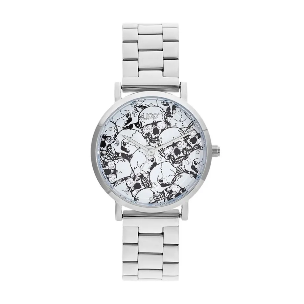 Montre Upp Solena Alliage Argente Ronde Quartz 29mm Fond Blanc Et Paillettes Rock N Roll Bracelet Acier Argente P101104-f