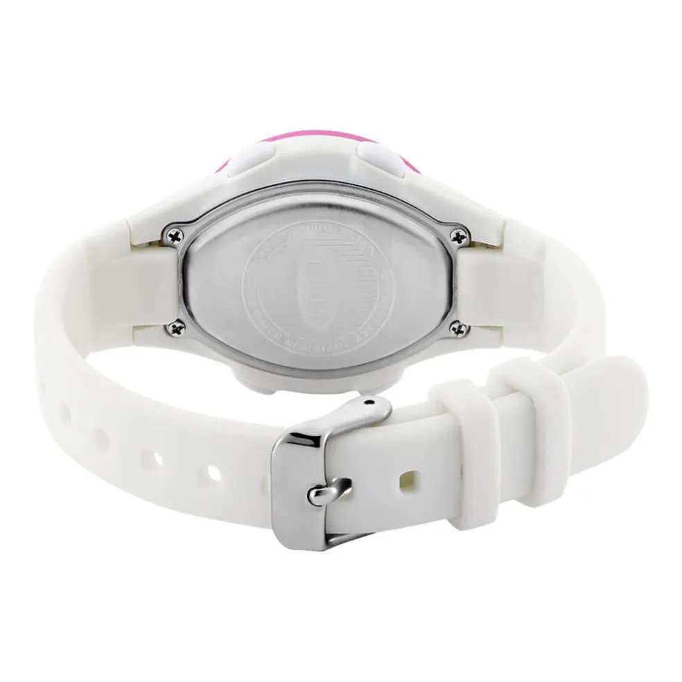 Montre Upp Summer Plastique Blanc Et Rose Ronde Digital 32mm Fond Blanc Bracelet Silicone Blanc Cl209