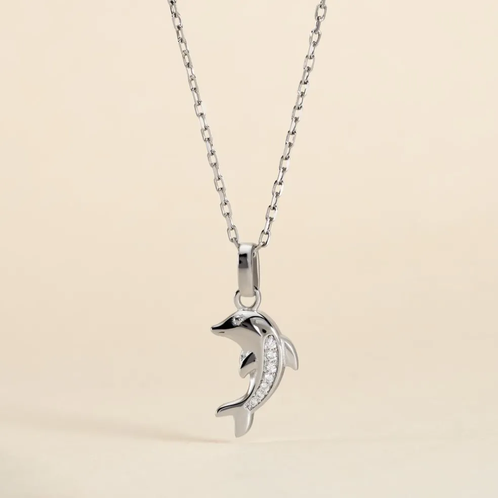 Pendentif Argent Blanc 925/1000 Dauphin Pavage Oxydes De Zirconium