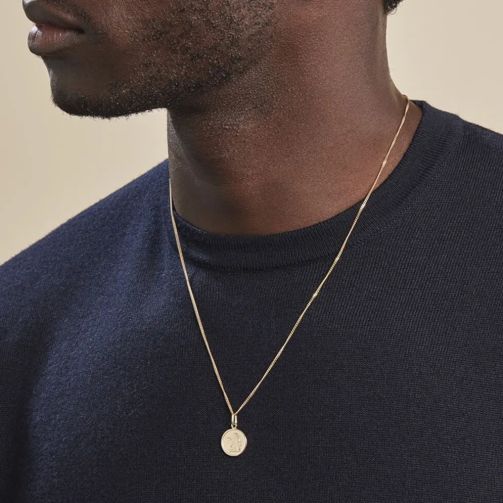 Pendentif Or Jaune 375/1000 Médaille Ronde Mat Motif Ange Penseur