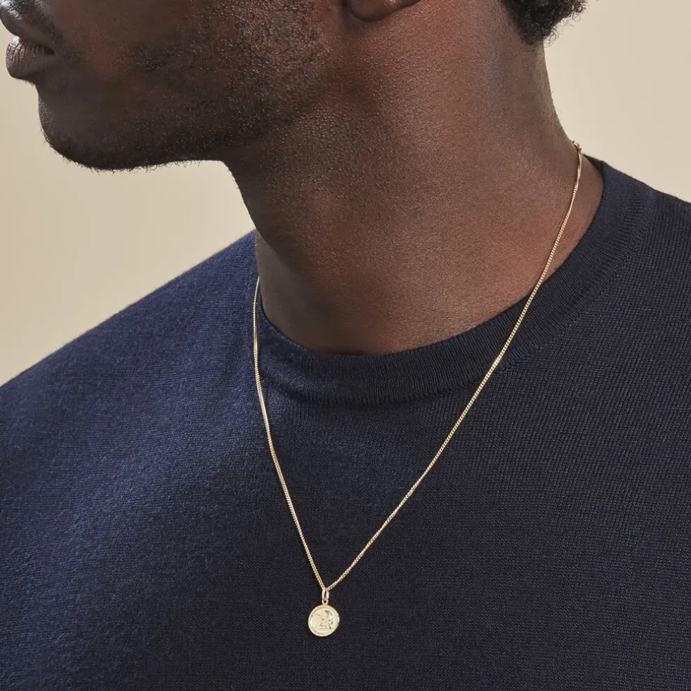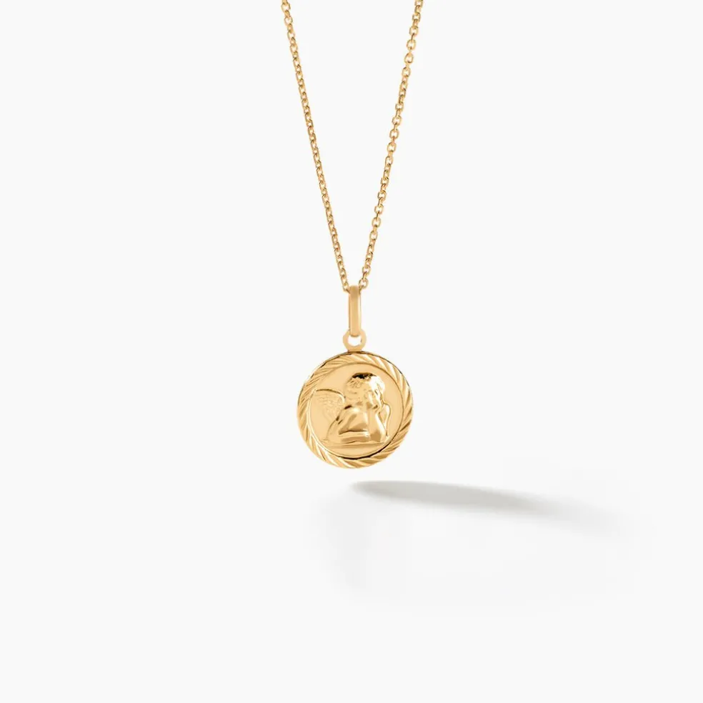 Medaille Or Jaune 375/1000 Sablee Motif Ange Pm 1cm