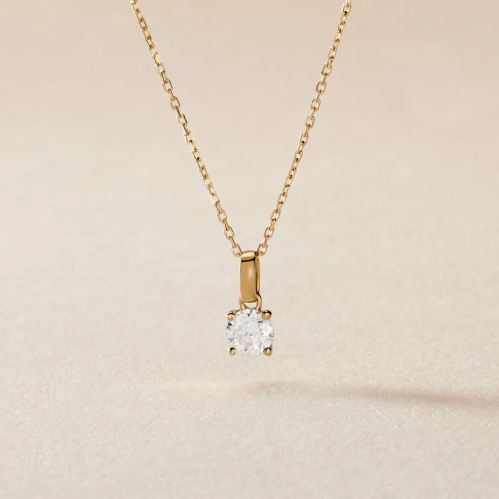 Pendentif Solitaire Or Jaune 375/1000 Diamant 0.35cts Serti 4 Griffes