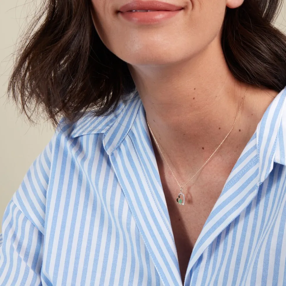 Pendentif Or Jaune 375/1000 C艙ur Emeraude Vert 0.2 Cts Serti Griffes