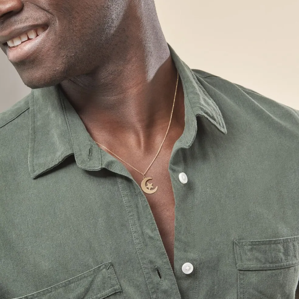 Pendentif Or Jaune 375/1000 Motif Mezzaluna Islamique Lisse