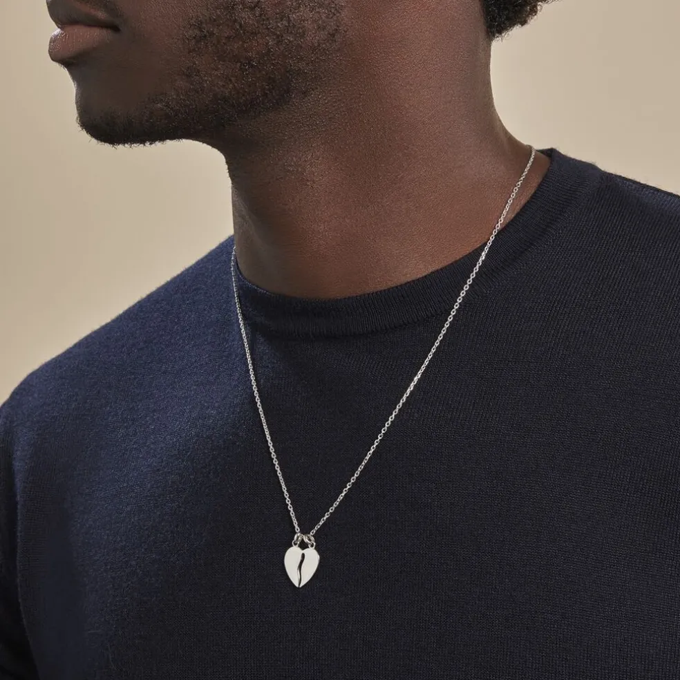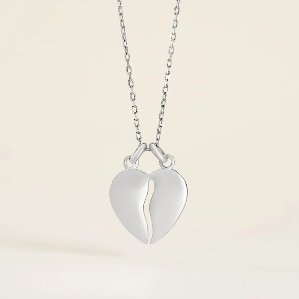 Pendentif Argent Blanc 925/1000 Coeur Sécable Amitié / Amour Gm