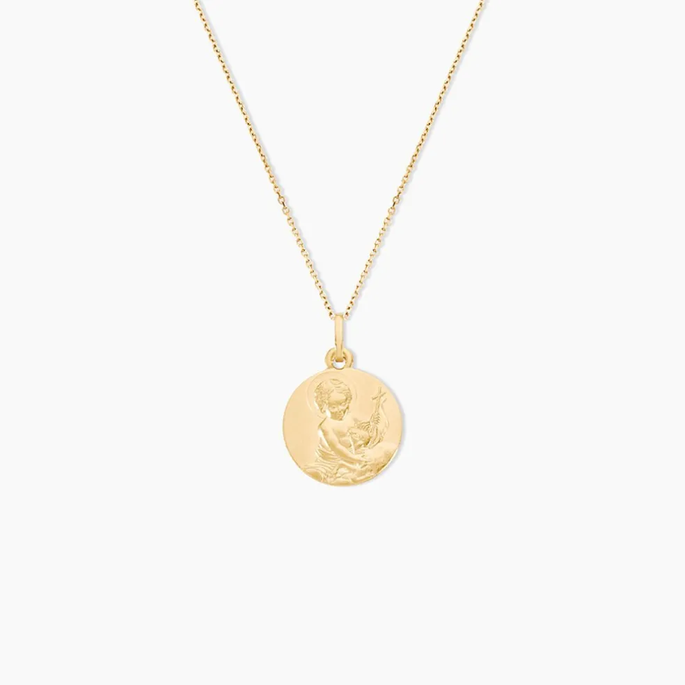 Medaille Or Jaune 750/1000 Saint Jean- Avec Un Agneau Effet Mat Diametre 16mm