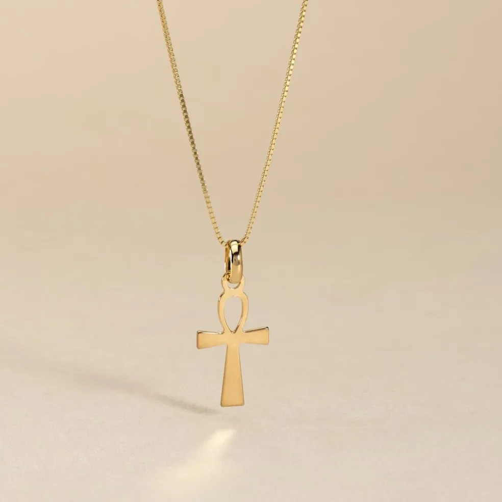 Pendentif Or Jaune 375/1000 Motif Croix De Vie Lisse