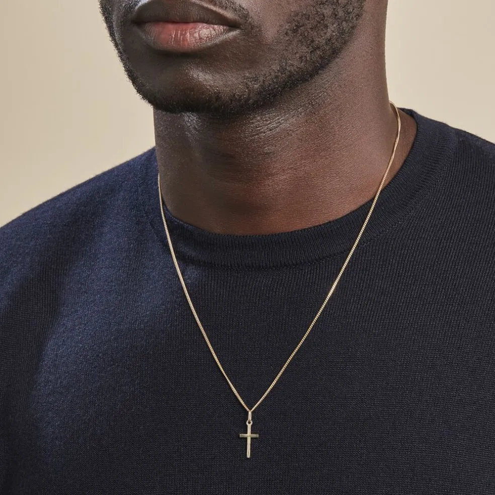 Pendentif Or Jaune 375/1000 Croix Religieuse Striée