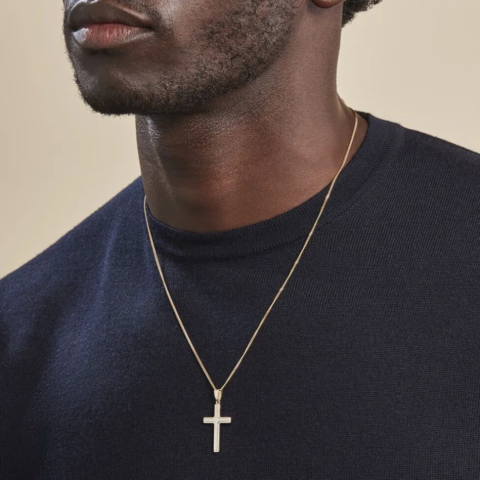 Pendentif Or Bicolore 375/1000 Motif Croix Ciselee