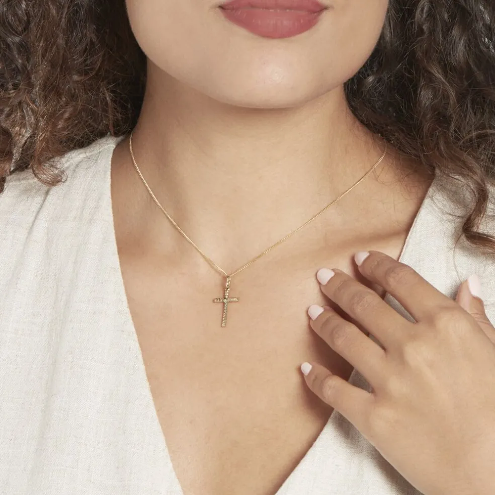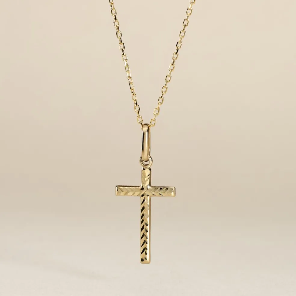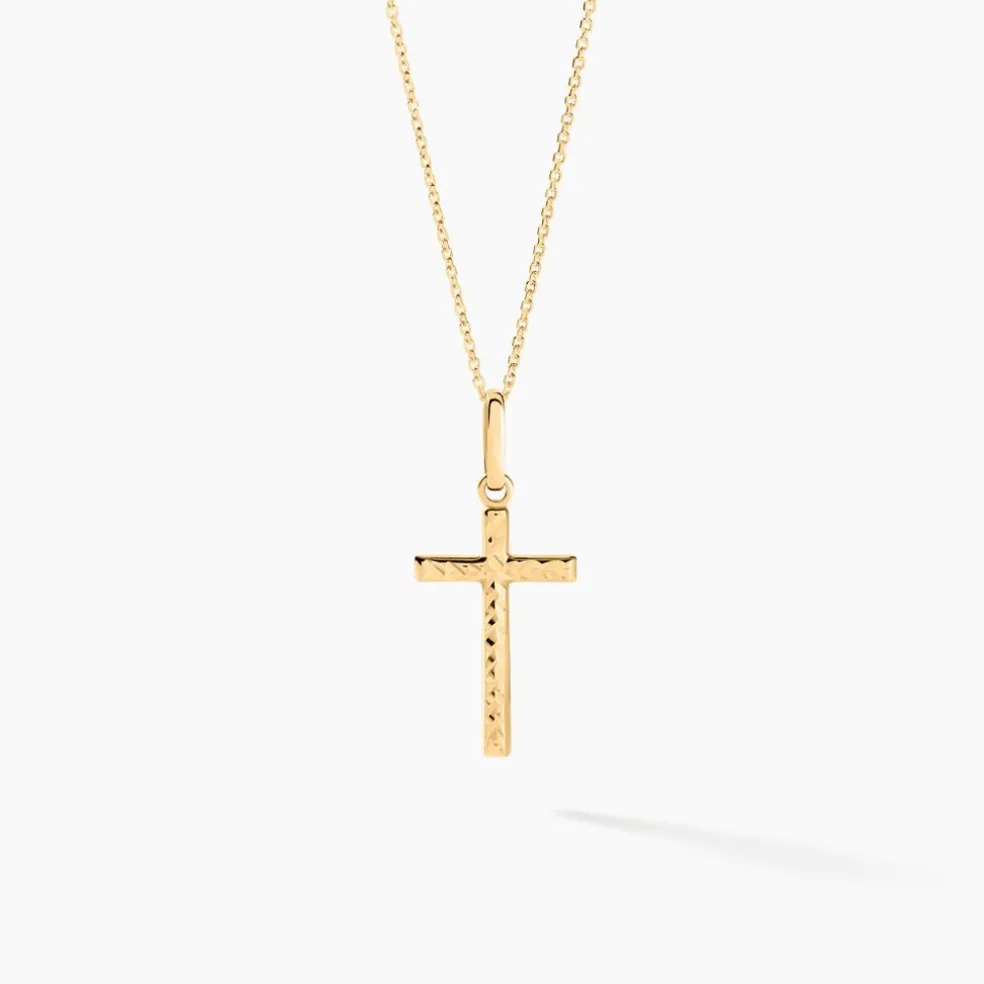 Pendentif Or Jaune 375/1000 Motif Croix Effet Cisele
