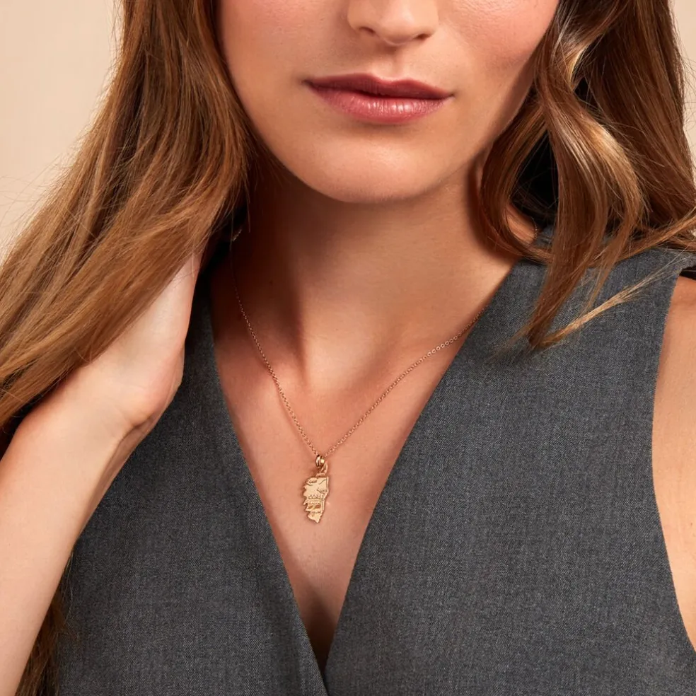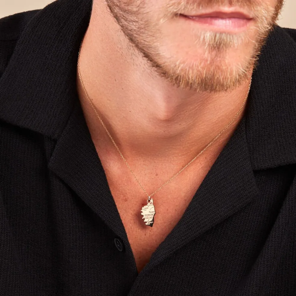 Pendentif Plaqué Or Jaune Carte Corse Avec Villes Hauteur2.5cm