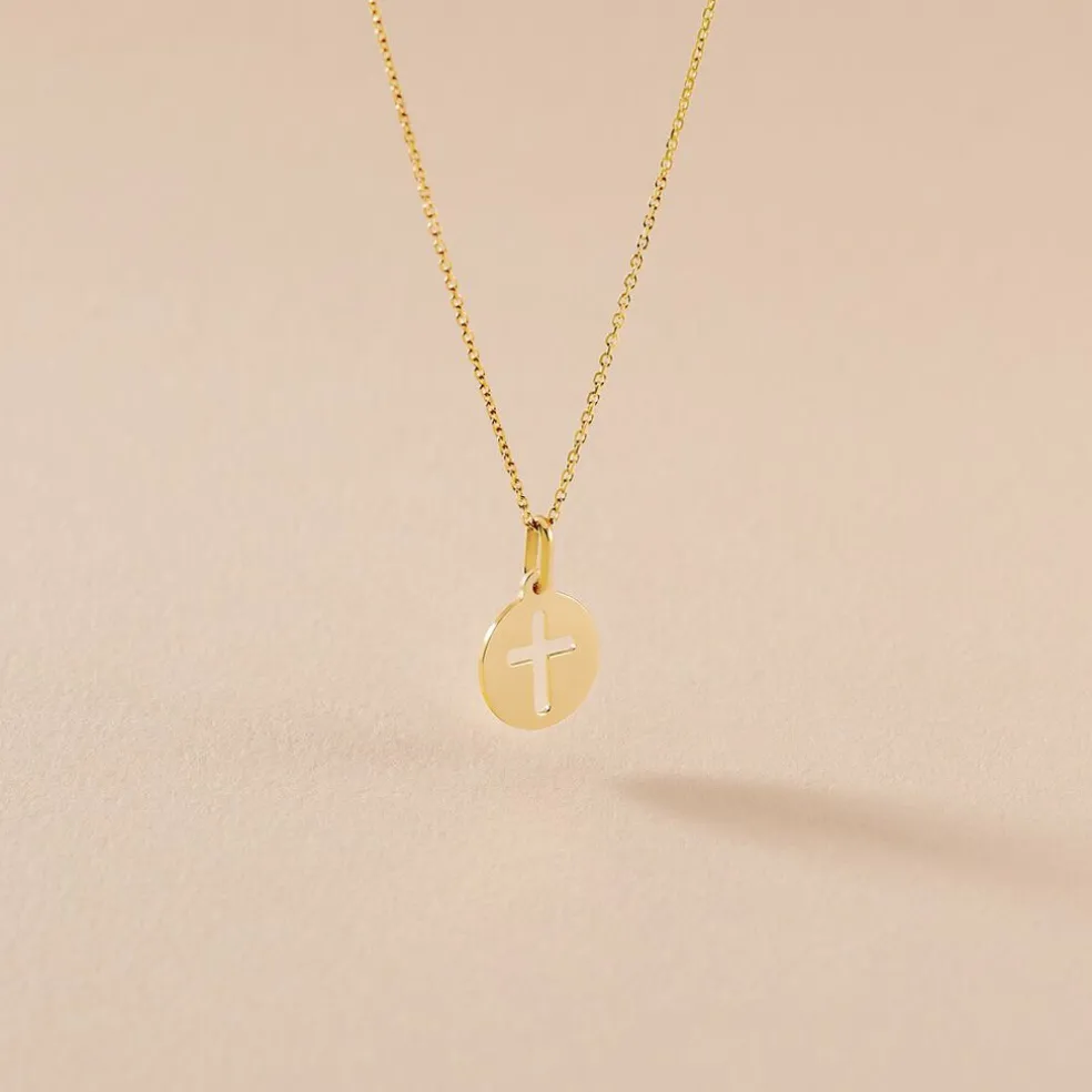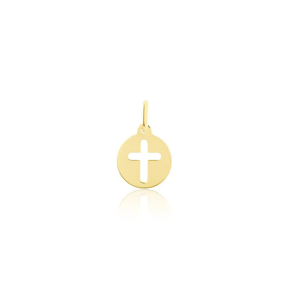 Pendentif Or Jaune 375/1000 Rond Croix Ajourée Diamètre 9.5mm