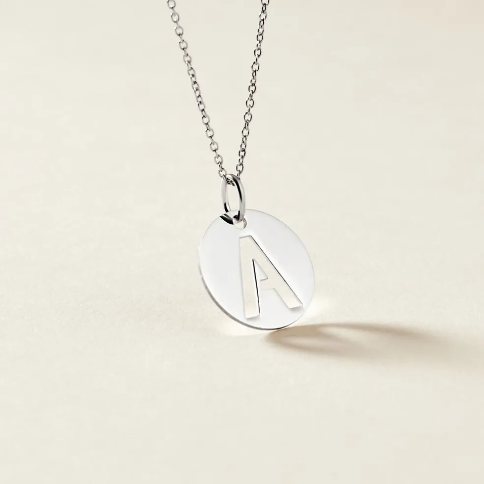 Pendentif Argent Blanc 925/1000 Pastille Lettre A Diametre 18mm