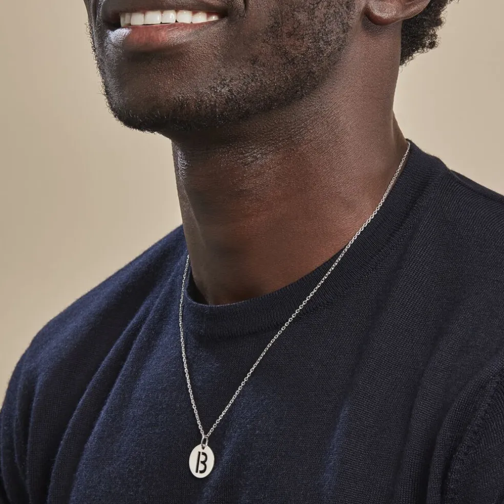 Pendentif Argent Blanc 925/1000 Pastille Lettre B Diametre 18mm
