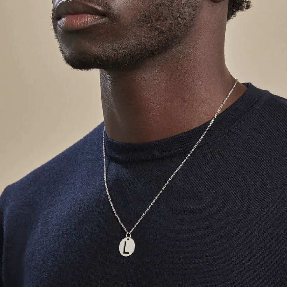 Pendentif Argent Blanc 925/1000 Pastille Lettre L Diametre 18mm