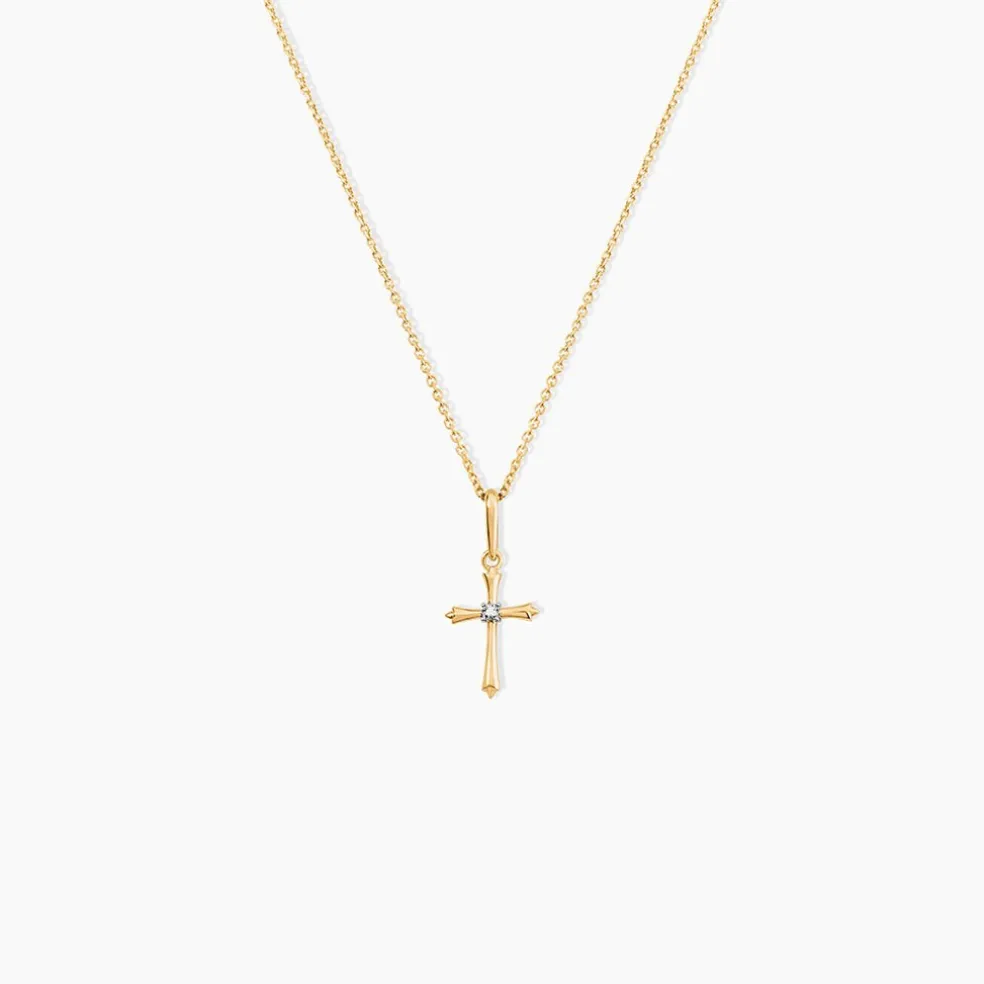 Pendentif Or Jaune 375/1000 Croix Diamant Serti Griffes