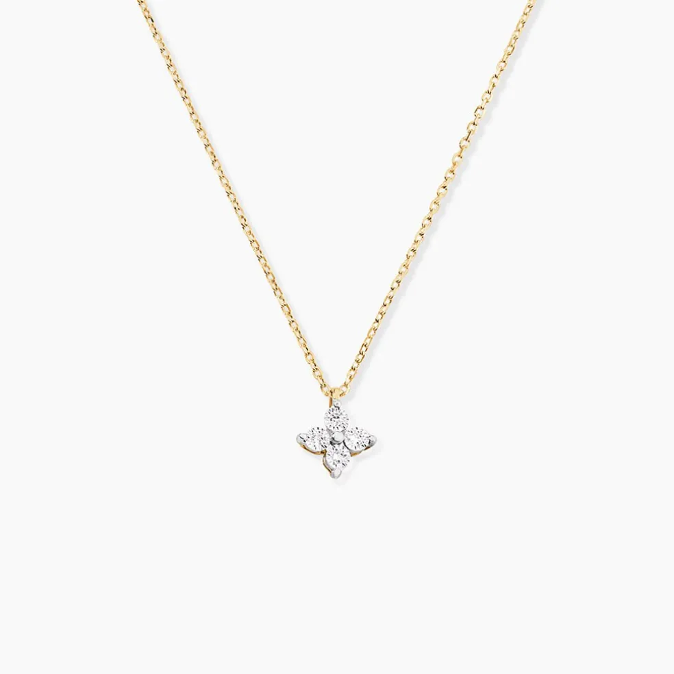 Collier Or Jaune 375/1000 Fleur Diamants Ronds Maille Forcat 40+2Cm