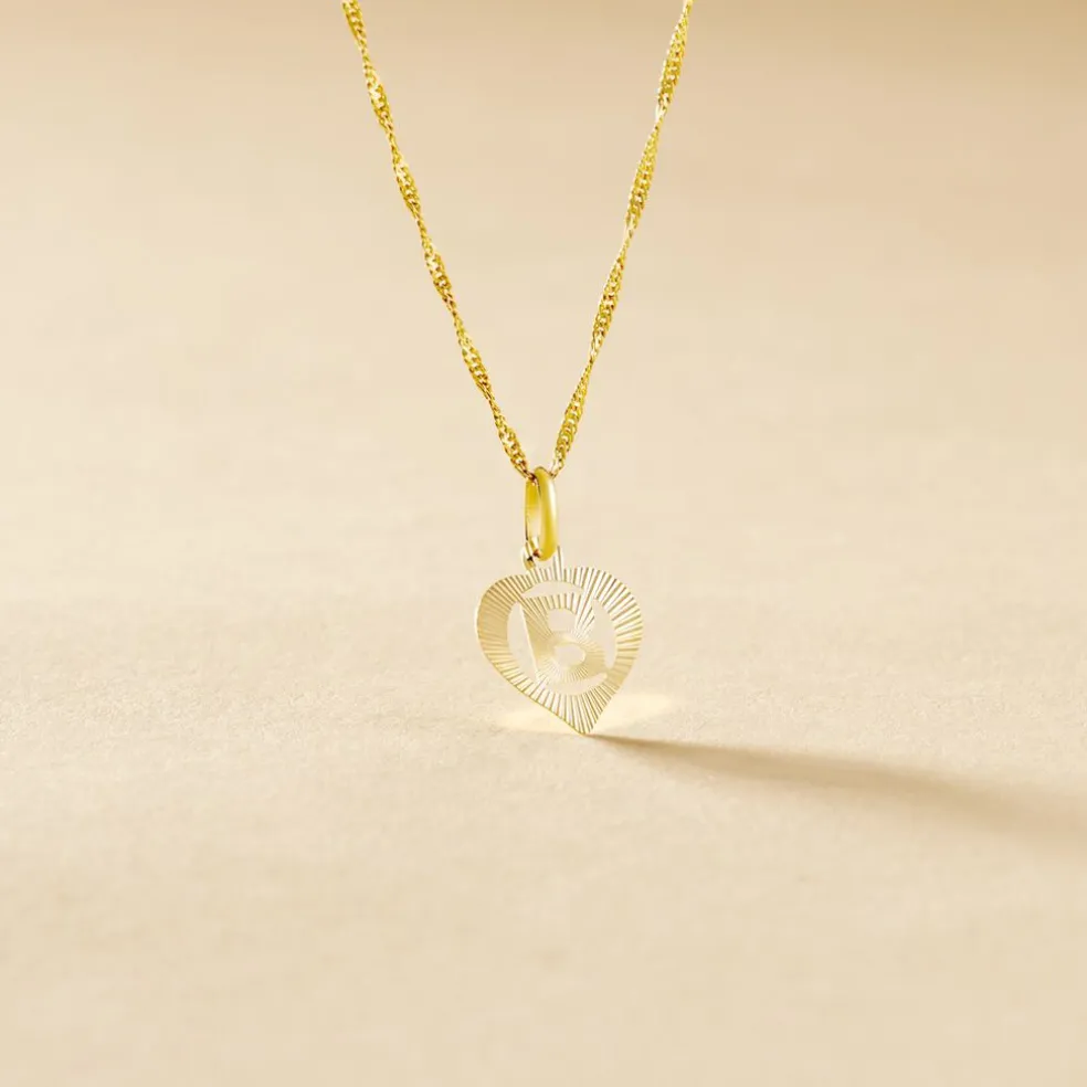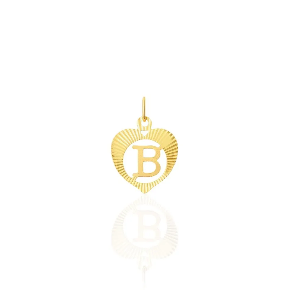 Pendentif Or Jaune 375/1000 C艙ur Ajouré Lettre B
