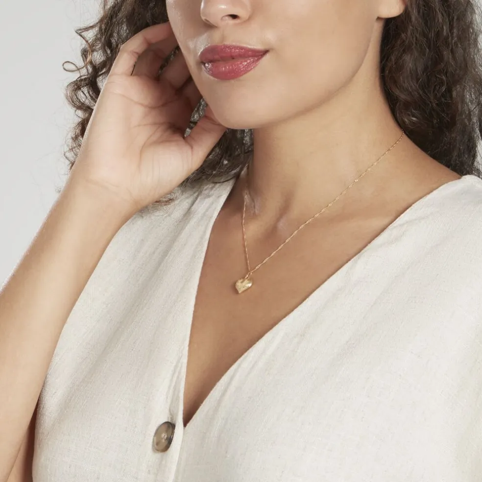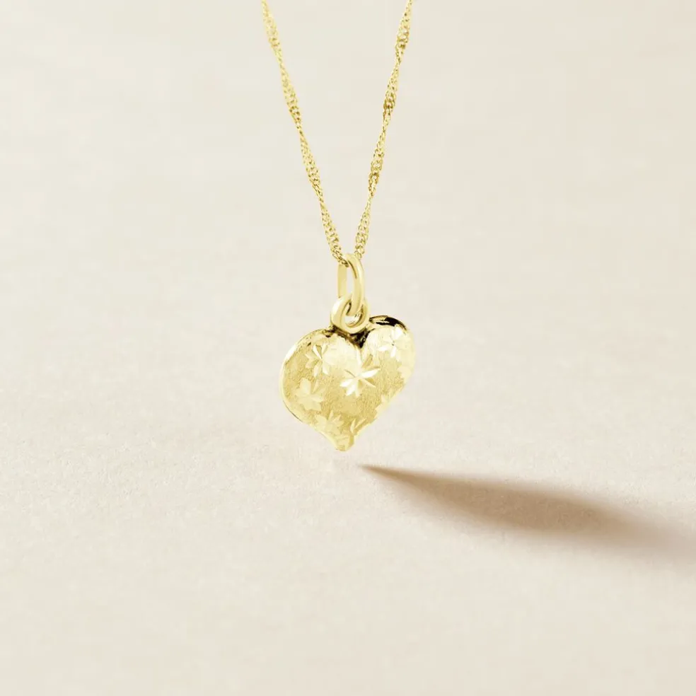 Pendentif Or Jaune 375/1000 Coeur Mat Et Brillant
