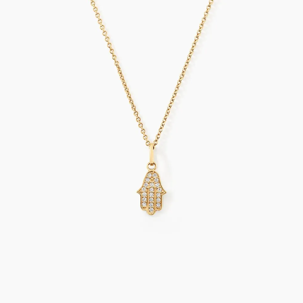 Pendentif Or Jaune 750/1000 Main De Fatma Pavage Oxydes De Zirconium
