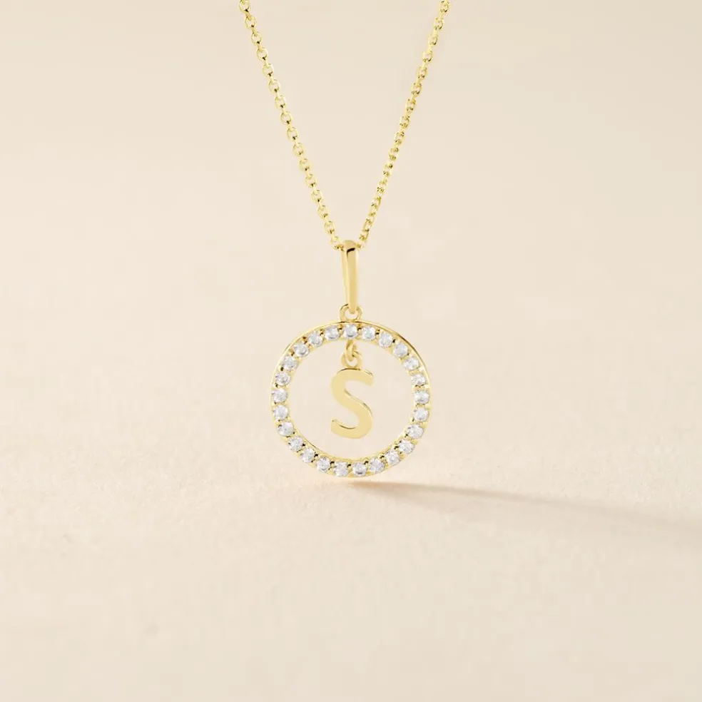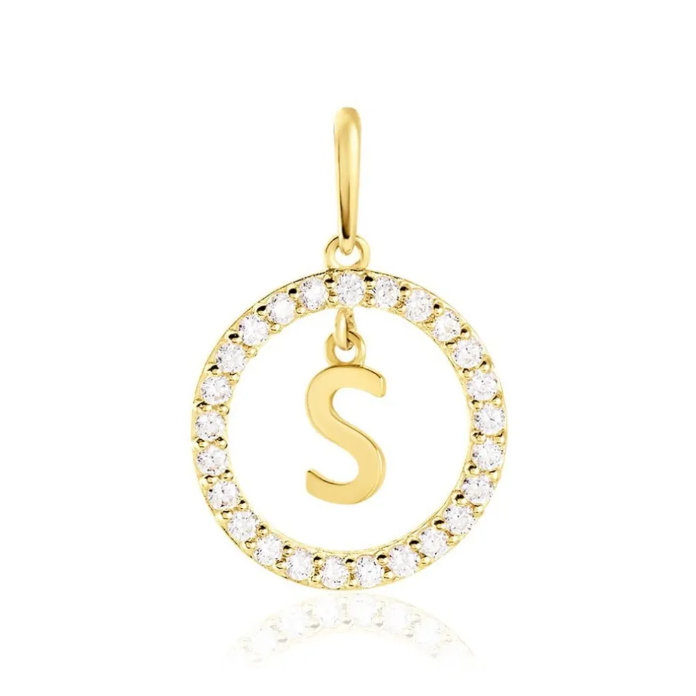 Pendentif Lettre S Or Jaune 375/1000 Entourage Oxyde De Zirconium Blanc