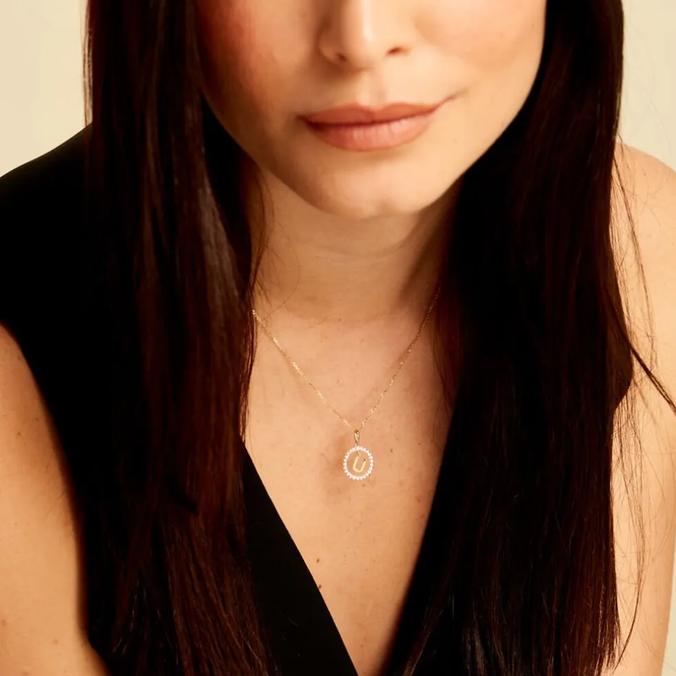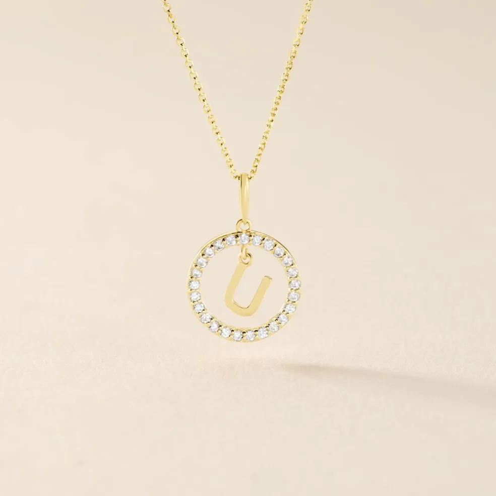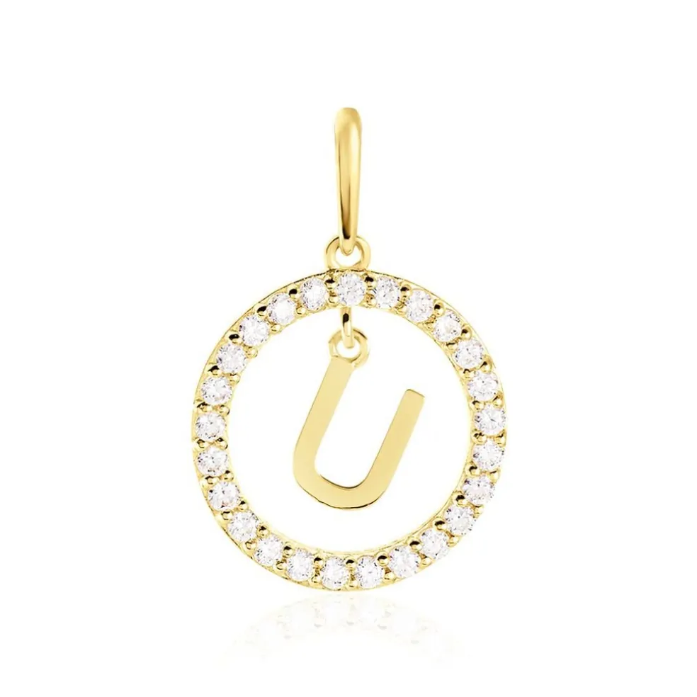 Pendentif Lettre U Or Jaune 375/1000 Entourage Oxyde De Zirconium Blanc
