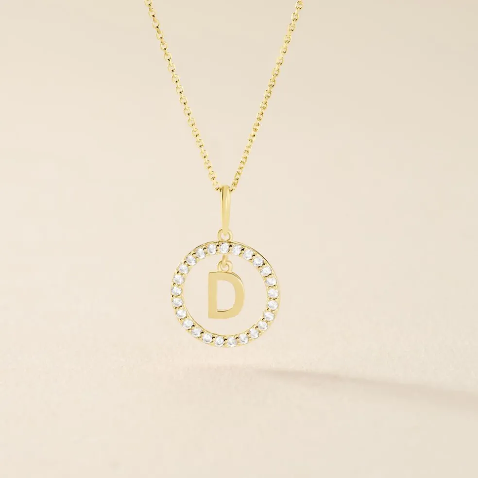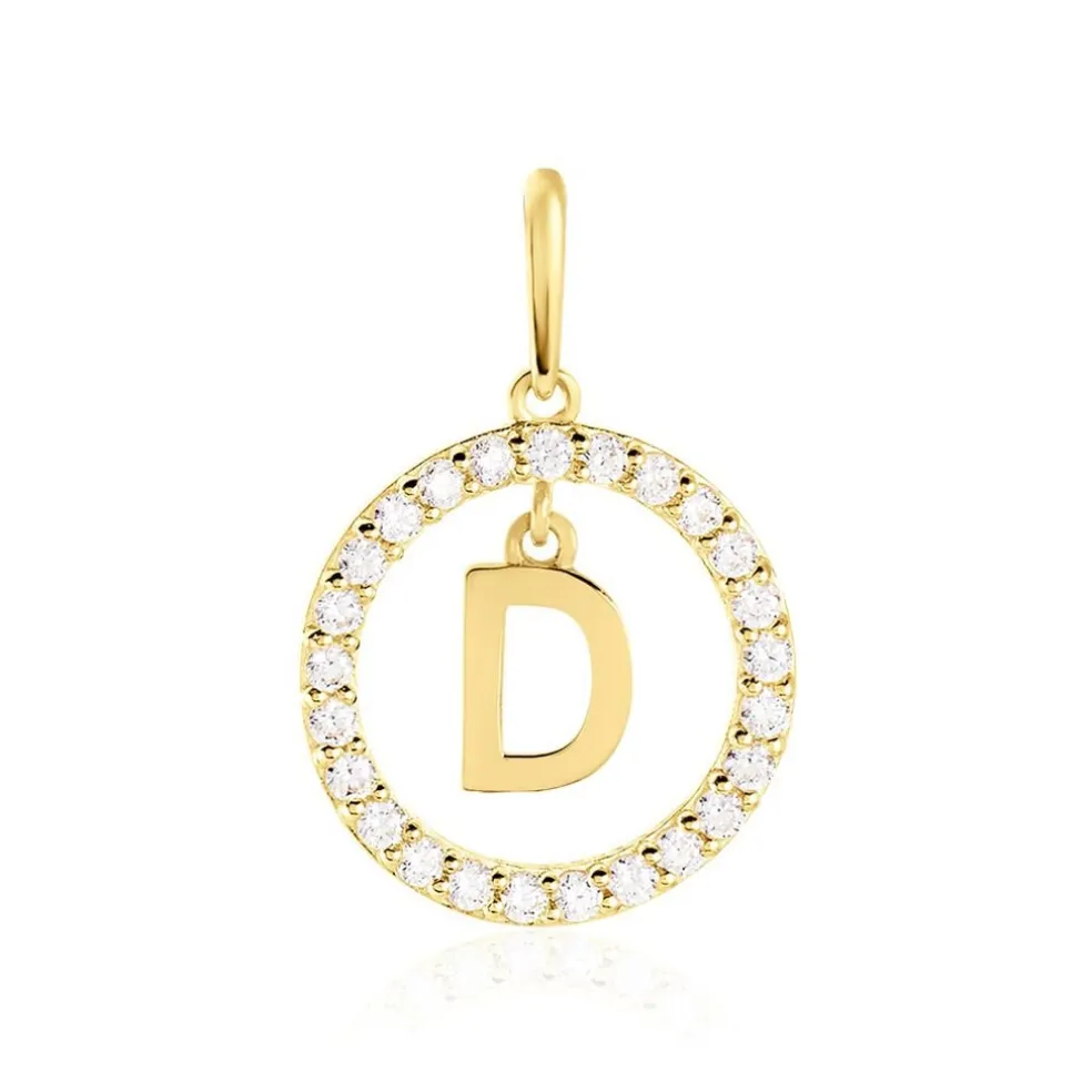Pendentif Lettre D Or Jaune 375/1000 Entourage Oxyde De Zirconium Blanc