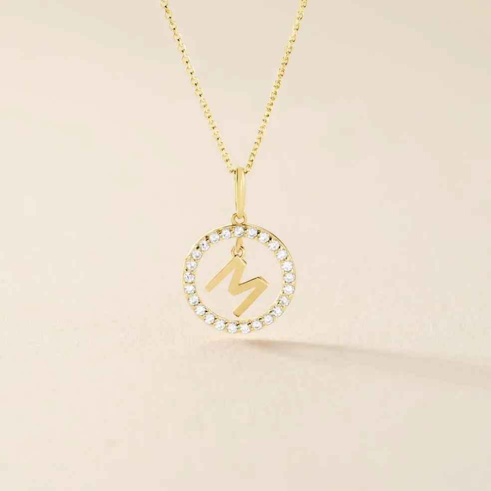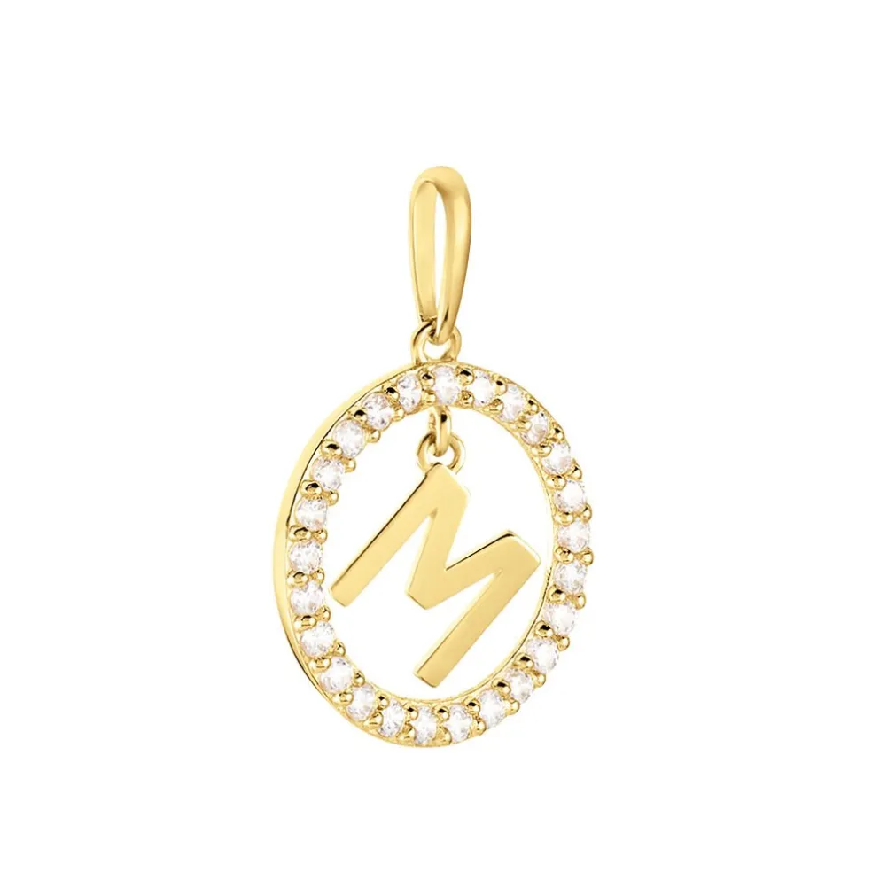 Pendentif Lettre M Or Jaune 375/1000 Entourage Oxyde De Zirconium Blanc