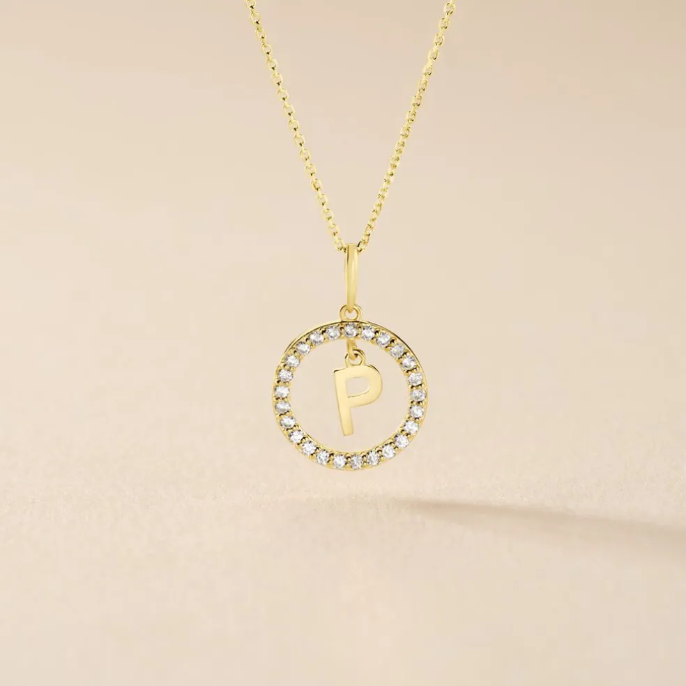 Pendentif Lettre P Or Jaune 375/1000 Entourage Oxyde De Zirconium Blanc