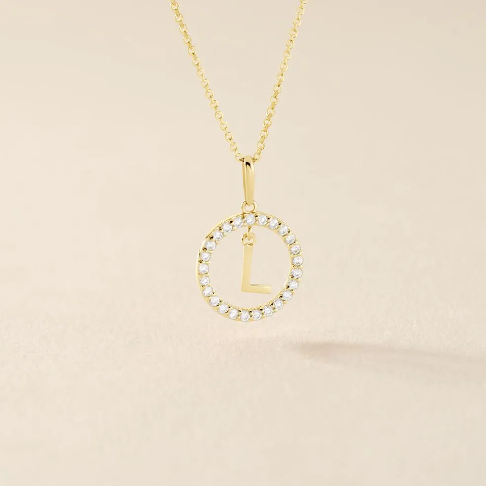 Pendentif Lettre L Or Jaune 375/1000 Entourage Oxyde De Zirconium Blanc