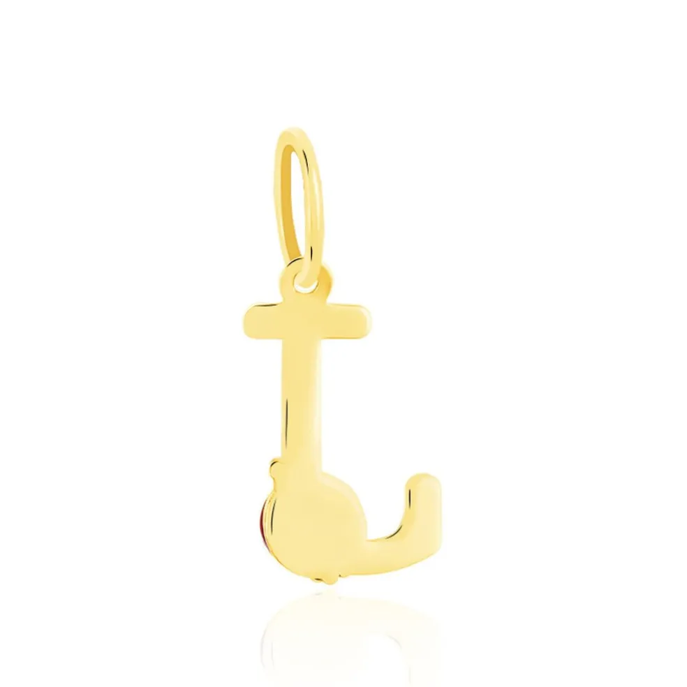 Pendentif Or Jaune 375/1000 Lettre J Motif Coccinelle Email Noir Et Rouge