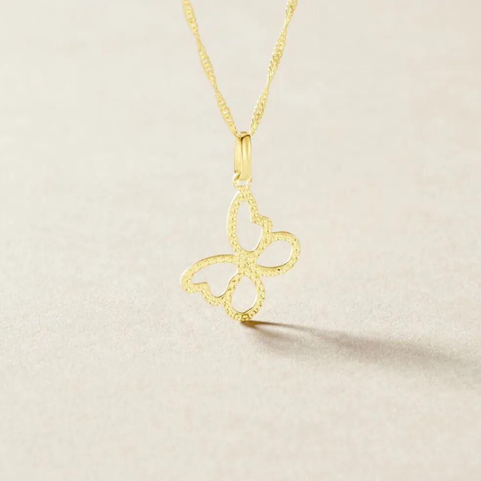 Pendentif Or Jaune 375/1000 Forme Papillon Effet Diamante