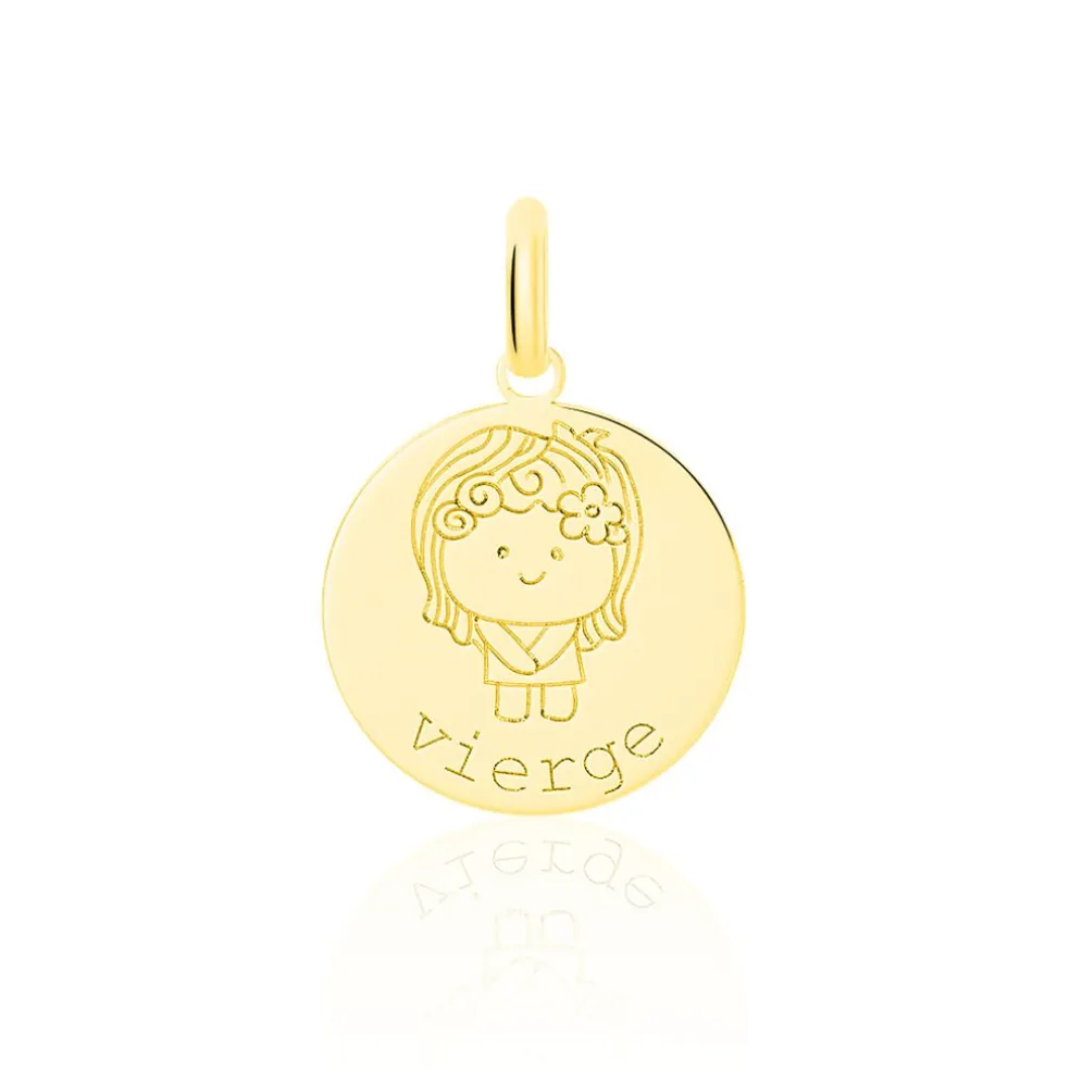 Pendentif Or Jaune 375/1000 Zodiaquemedaille Ronde Signe Vierge