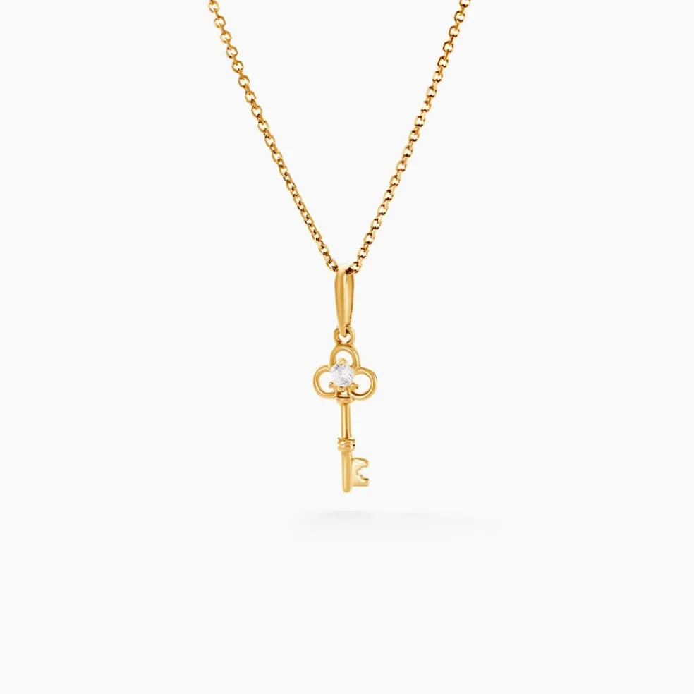 Pendentif Or Jaune 375/1000 Cle Oxyde De Zirconium Serti Griffes