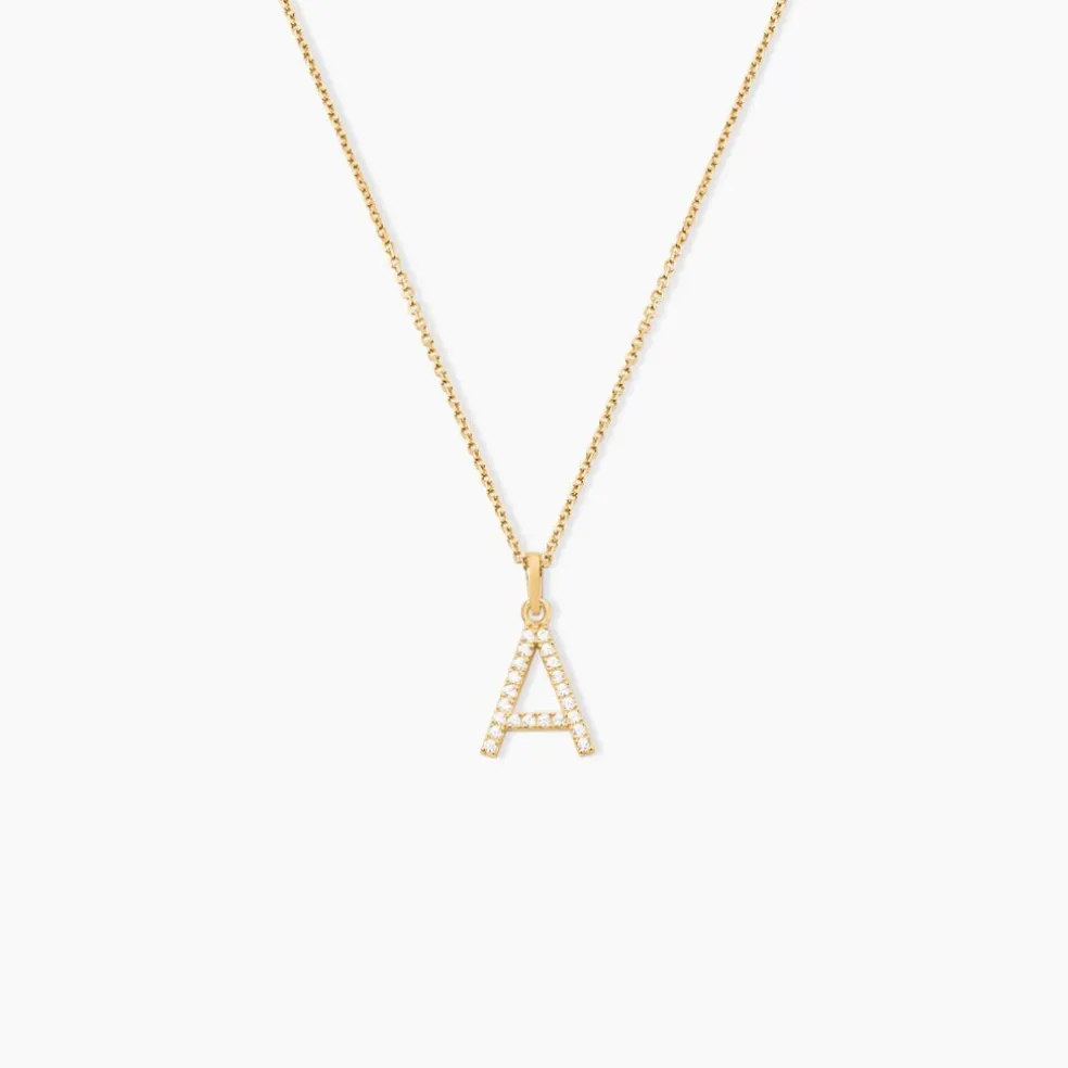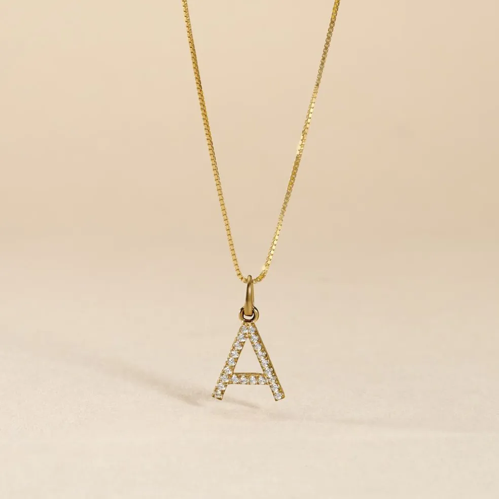 Pendentif Or Jaune 375/1000 Lettre A Oxydes De Zirconium Serti Griffes