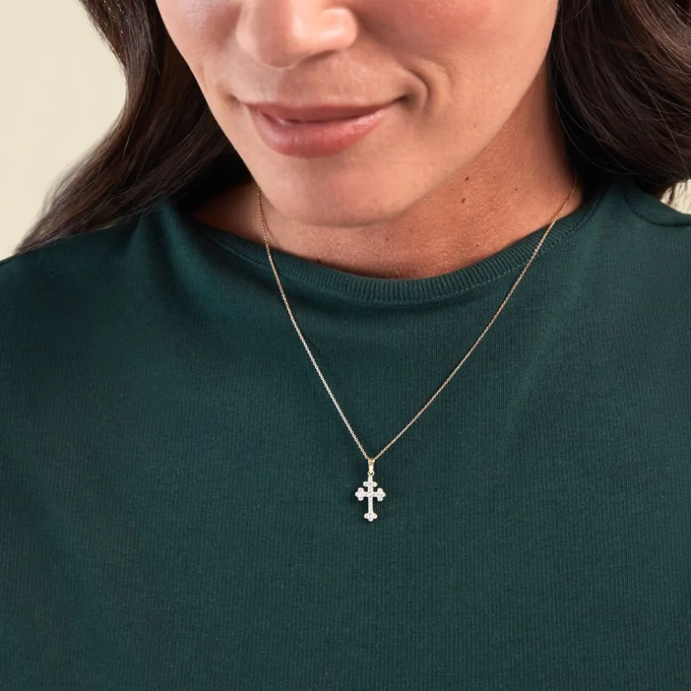 Pendentif Or Jaune 375/1000 Croix Oxyde De Zirconium Serti Griffes
