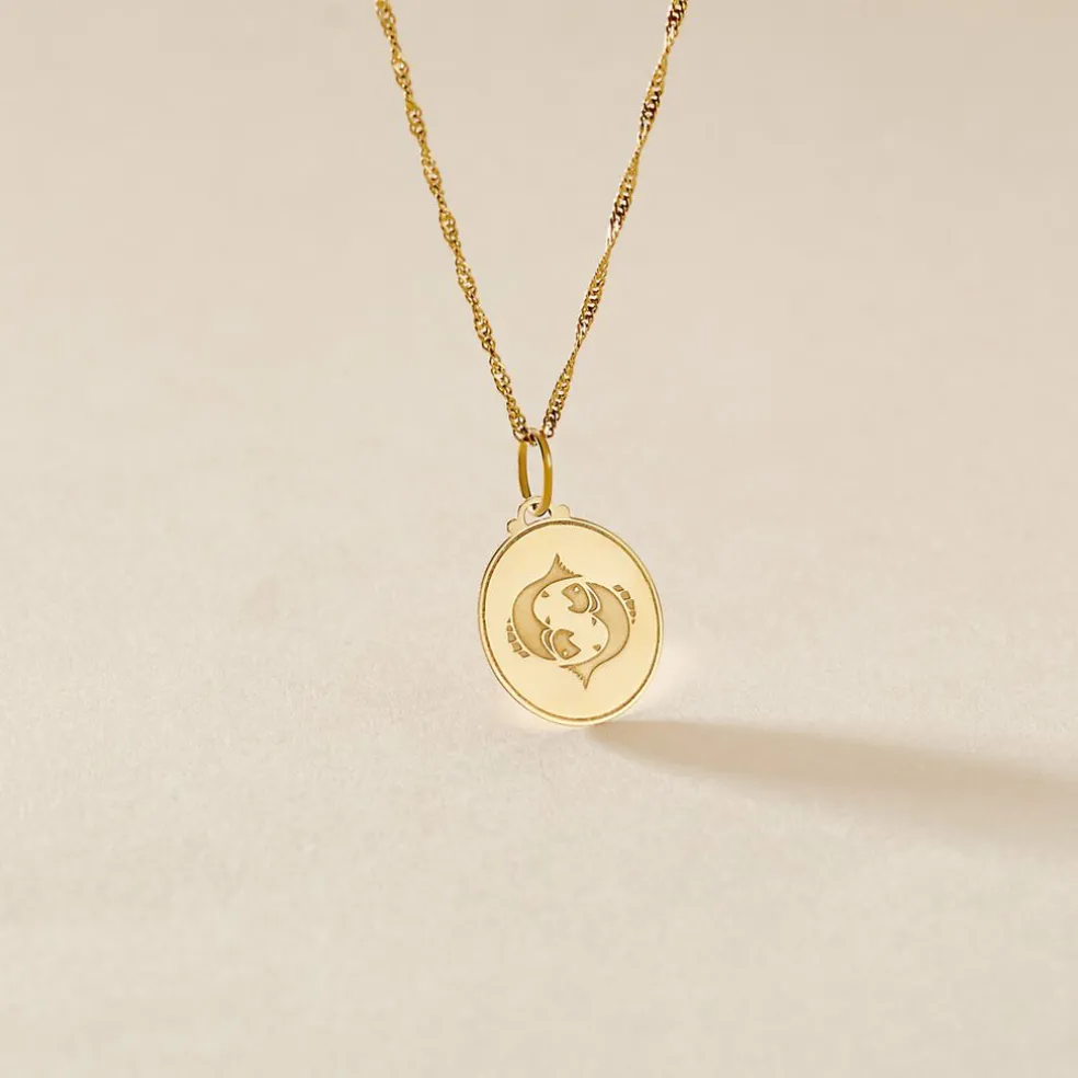 Pendentif Or Jaune 375/1000 Medaille Ronde Motif Poisson