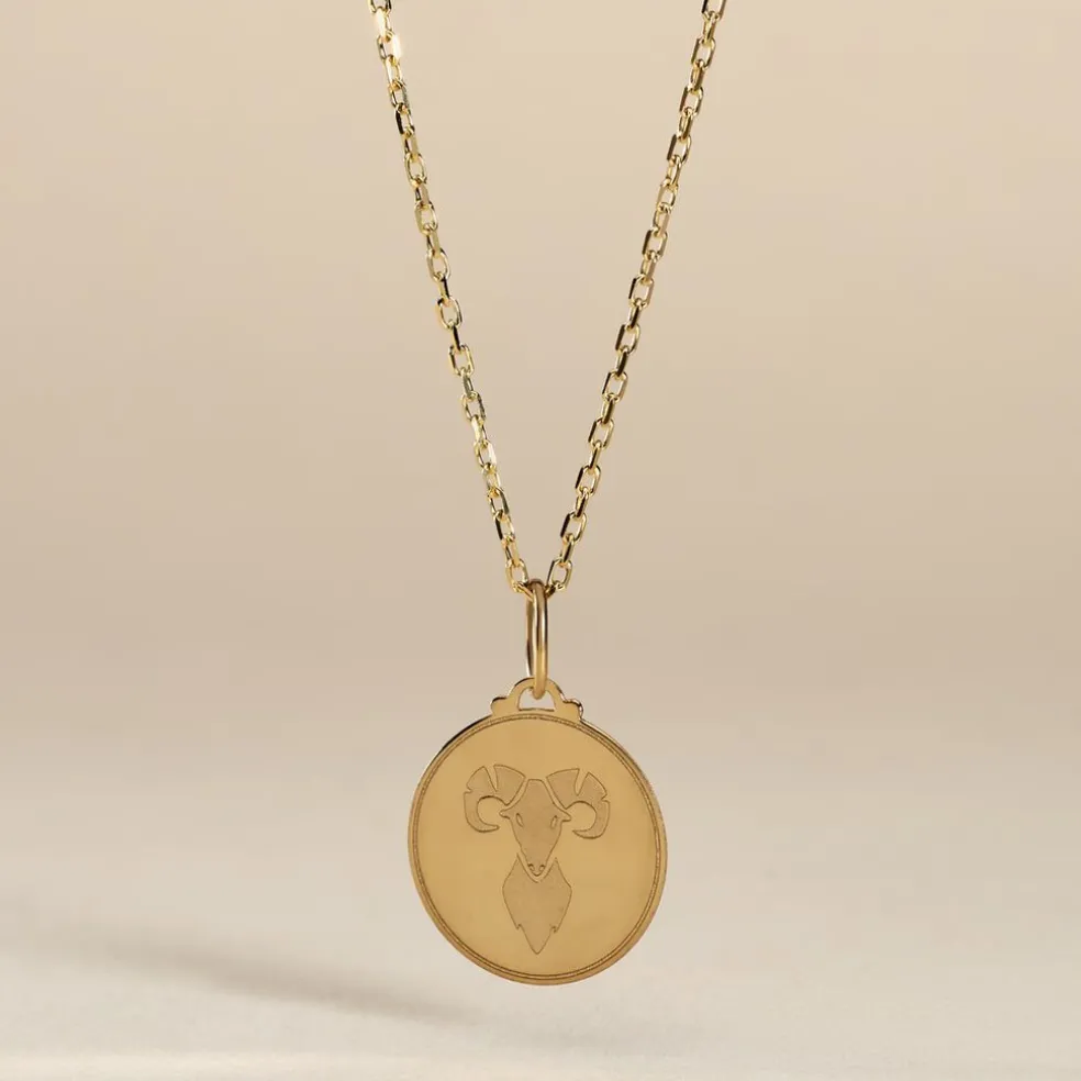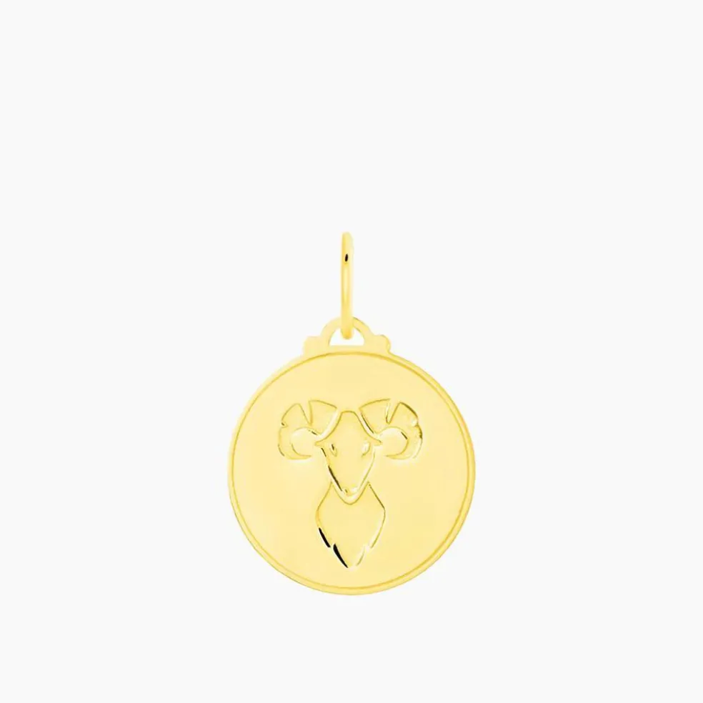 Pendentif Or Jaune 375/1000 Medaille Ronde Motif Belier