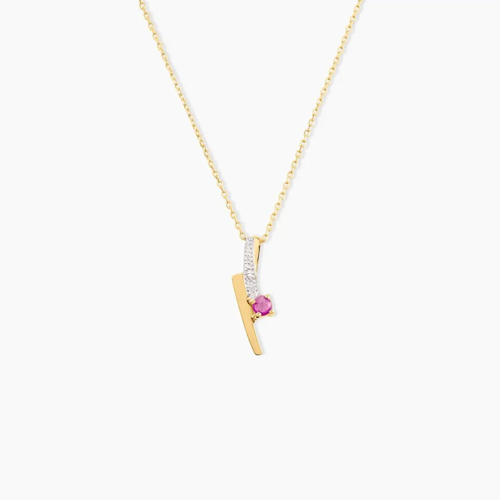 Pendentif Or Jaune 375/1000 Lisse Rubis 0.16ct Serti 4 Griffes