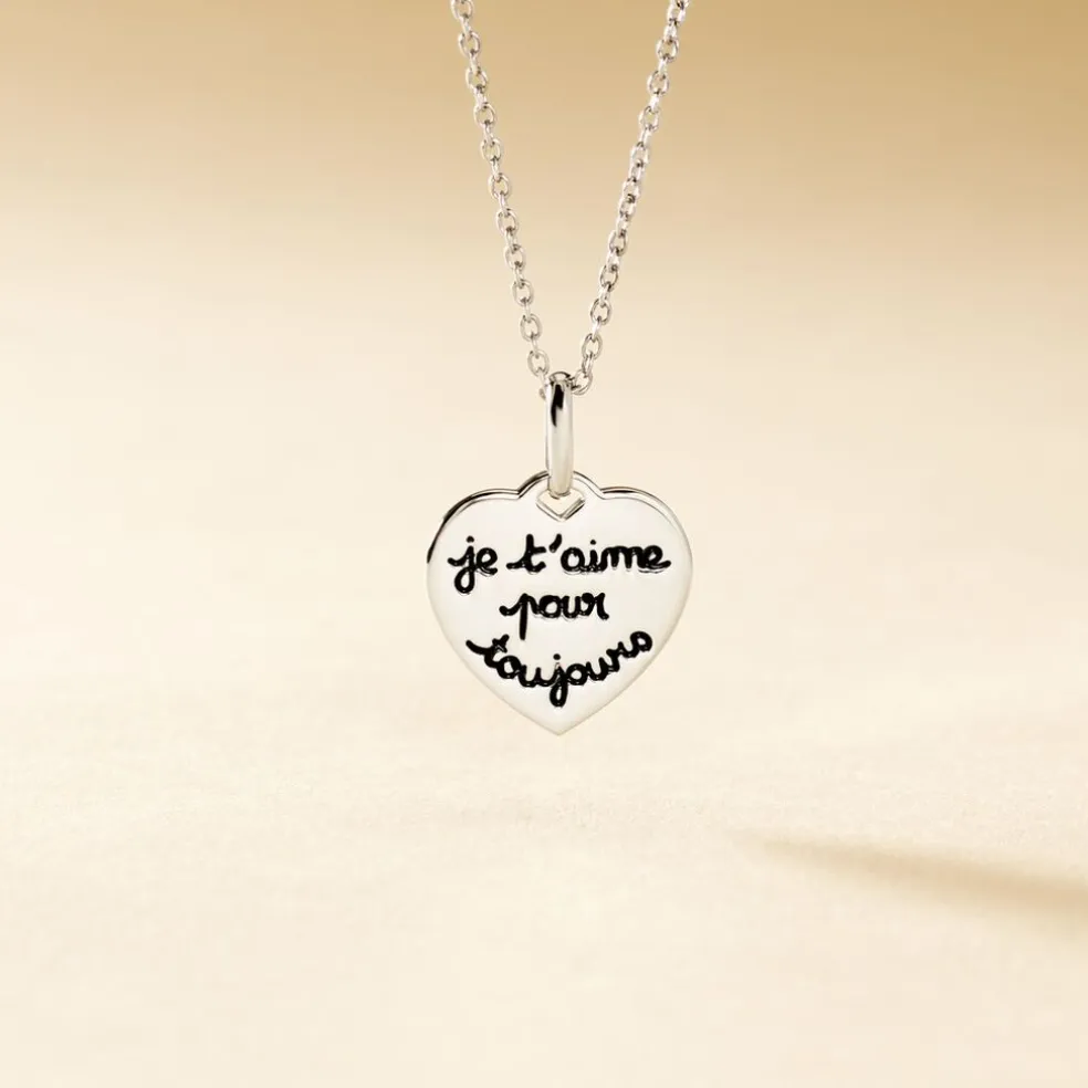 Pendentif Argent Blanc 925/1000 Coeur Message Je T’aime Pour Toujours