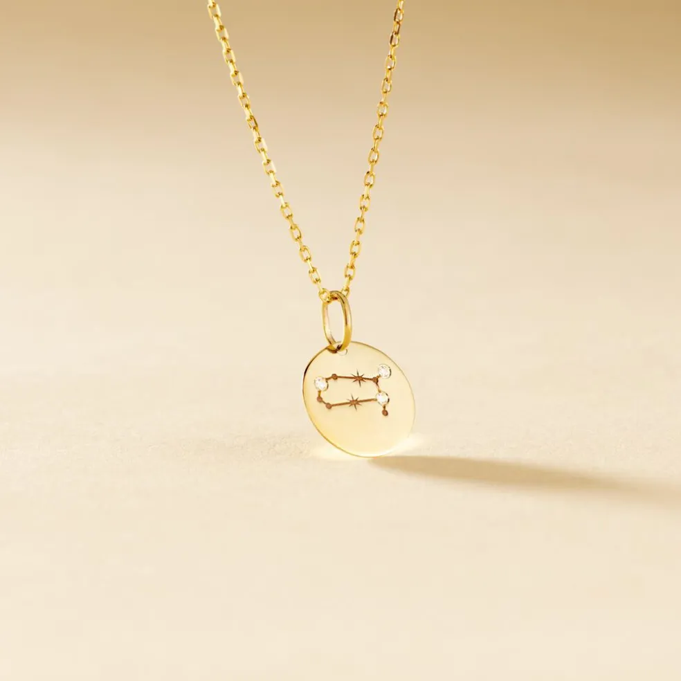 Pendentif Or Jaune 375/1000 Zodiaque Gemeaux Oxyde De Zirconium 0.045cts Serti Grains