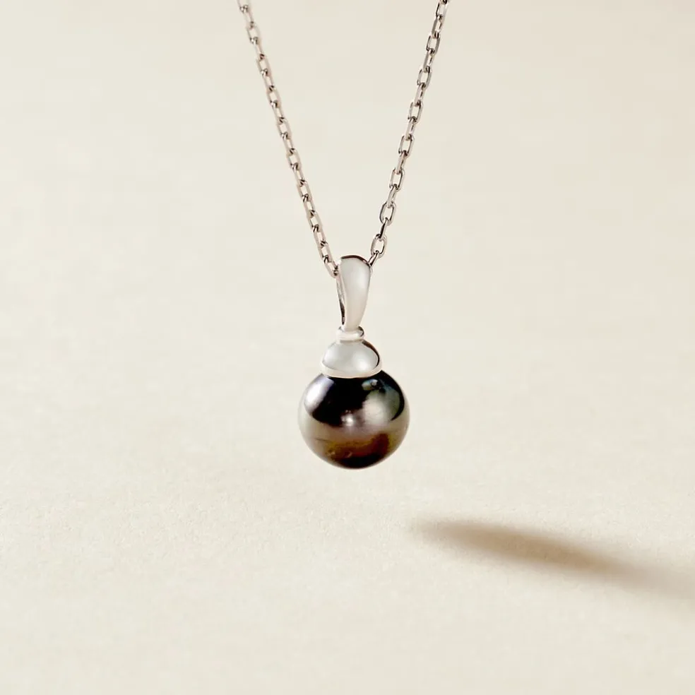 Pendentif Or Blanc 375/1000 Perle De Culture De Tahiti Noire 9.5/10mm