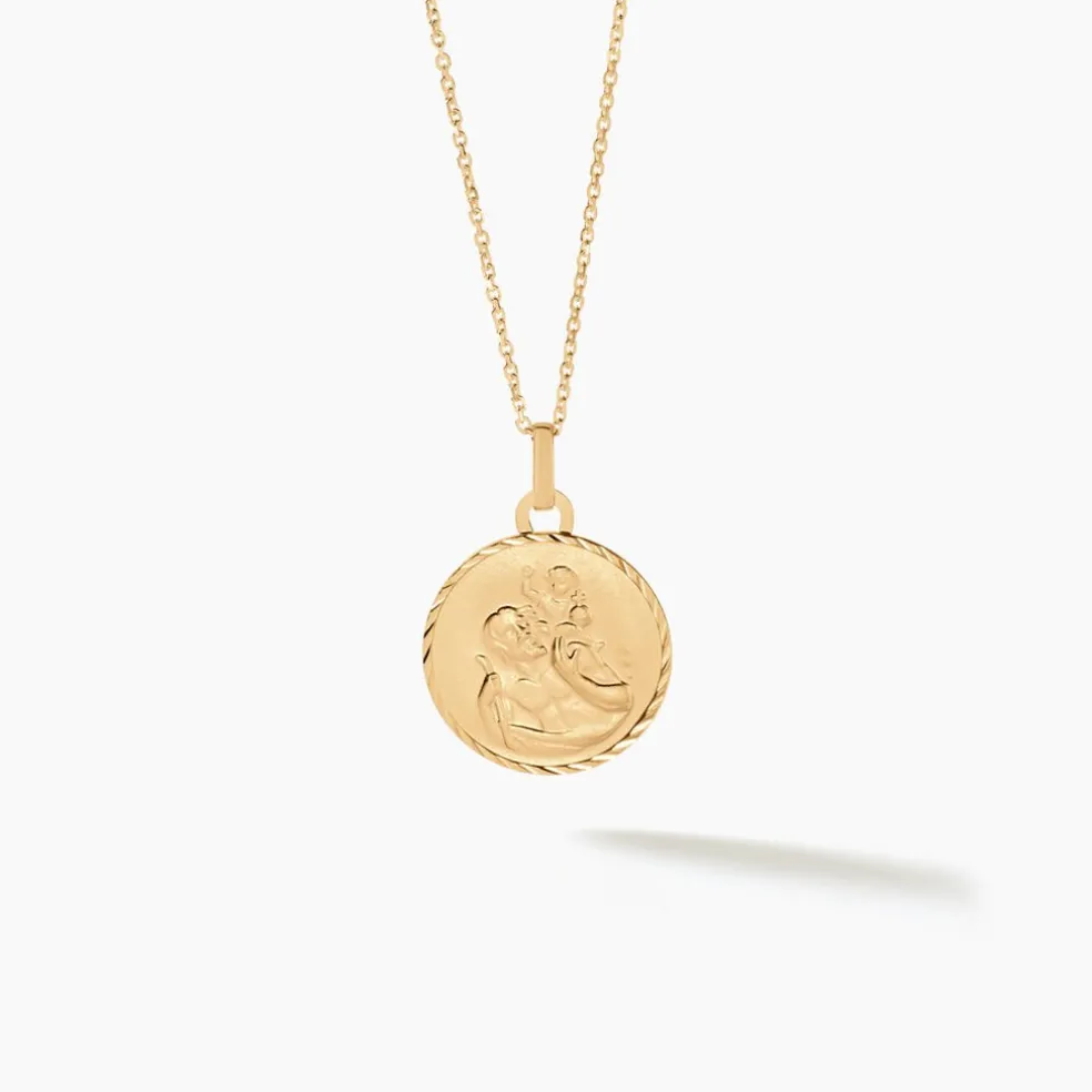 Medaille Or Jaune 375/1000 Ronde Diamantee Motif Saint Christophe
