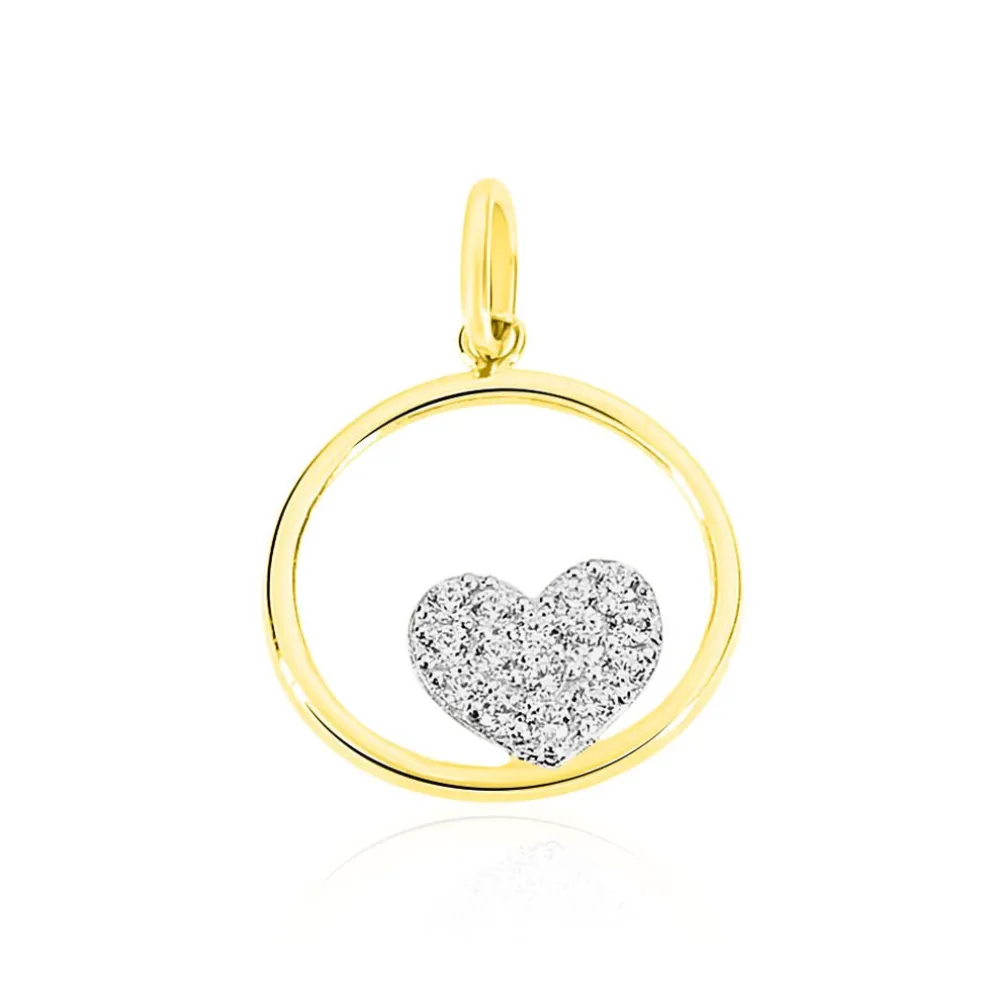 Pendentif Or Jaune 375/1000 Cercle Et C艙ur Oxydes De Zirconium